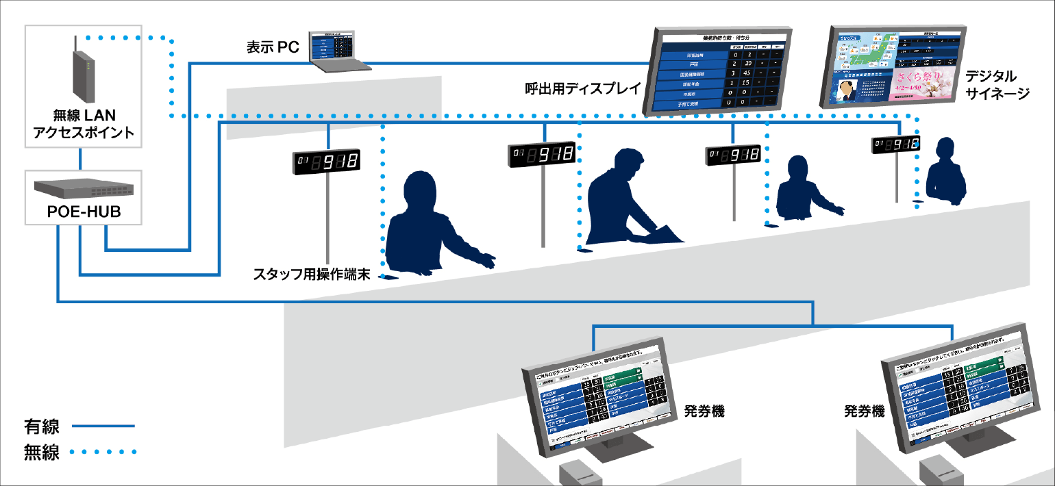 窓口環境により、個別表示器が設置できなくても呼出用ディスプレイのみの運用もできます。